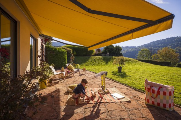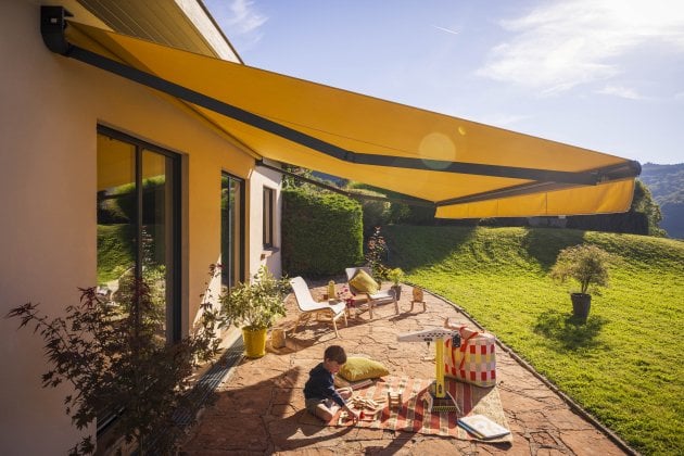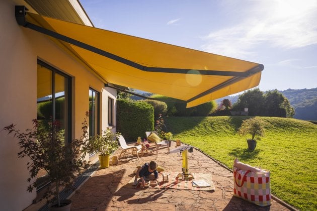 Le Store loggia Rayy est très compact et s’installe même dans un espace restreint avec ses 24.2 cm de hauteur. Il fait partie des 5 stores les plus compacts du marché et pourtant, il permet de très grandes dimensions (5.92 x 3.50 m au maximum).