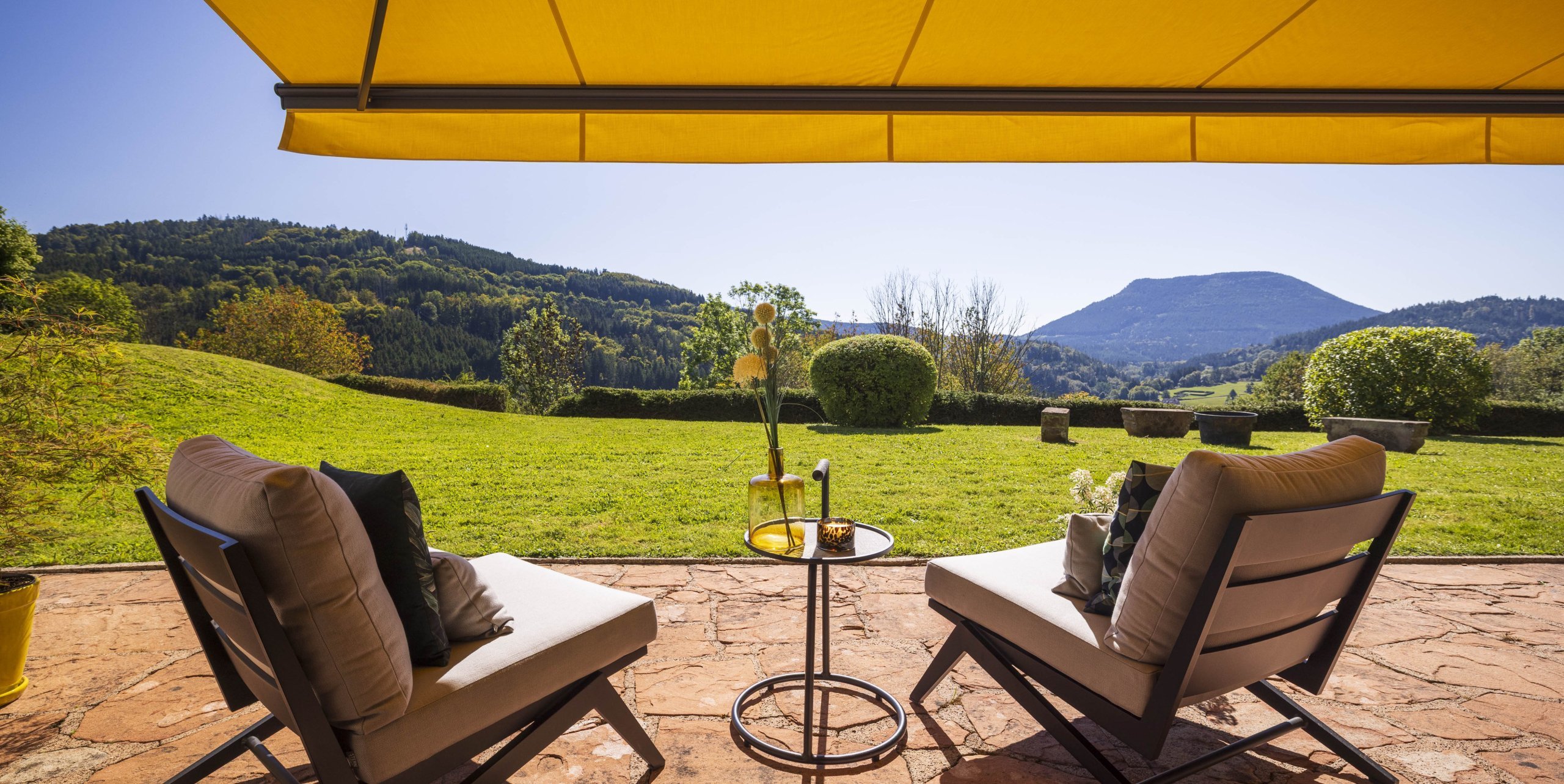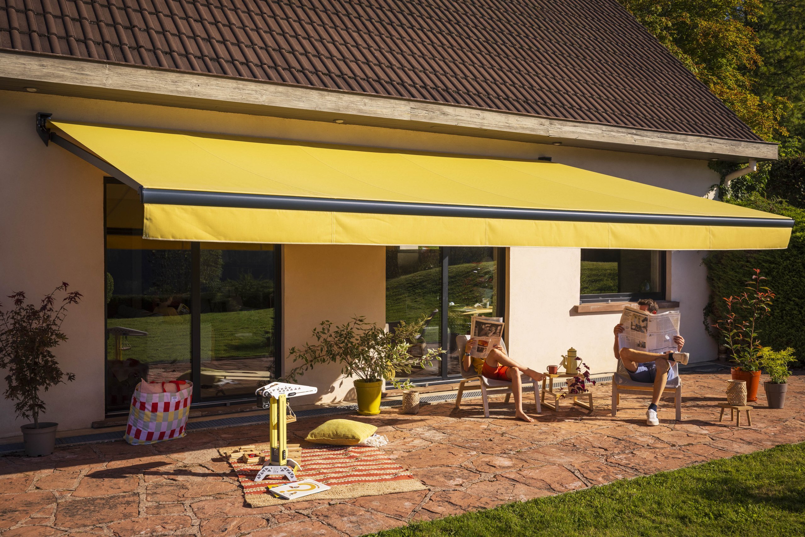 Pas de compromis : 600 combinaisons de couleurs, moteur et télécommande connectés SOMFY IO, toile DICKSON Orchestra, supports pour pose murale ou plafond.