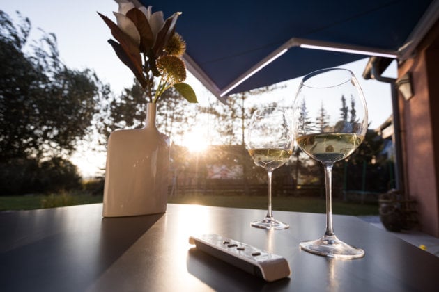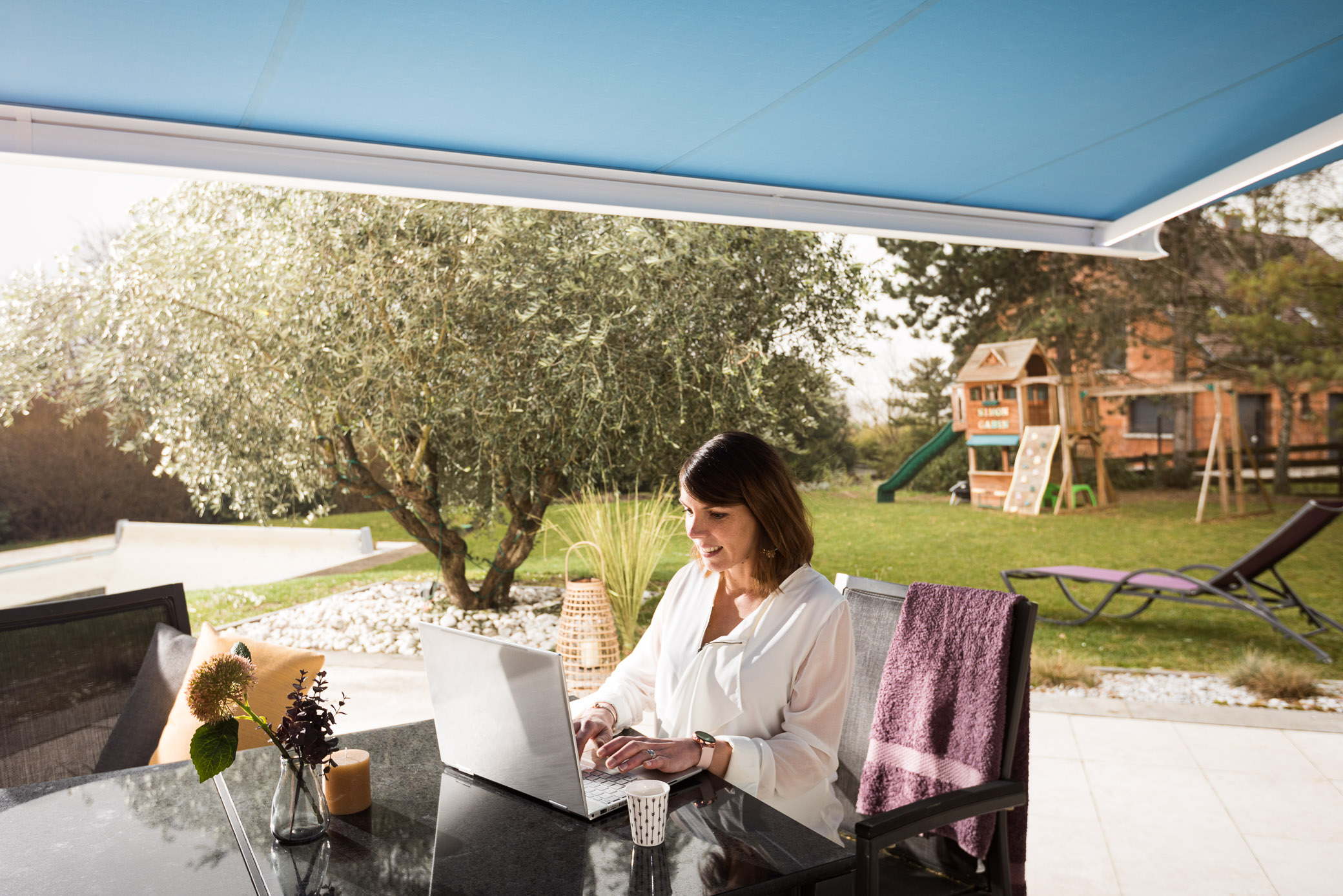 Pour prolonger vos soirées ou apporter une ambiance lumineuse à votre extérieur, nous vous proposons l’option LED. Parfaitement intégré dans les profils inférieurs des bras, les LEDs diffusent une lumière agréable sur votre zone de vie. Vous pouvez allumer et régler l’intensité de la luminosité avec la même télécommande que le store. Ou alors, il est possible de placer les LEDs sous le coffre si vous préférez. Pratique !